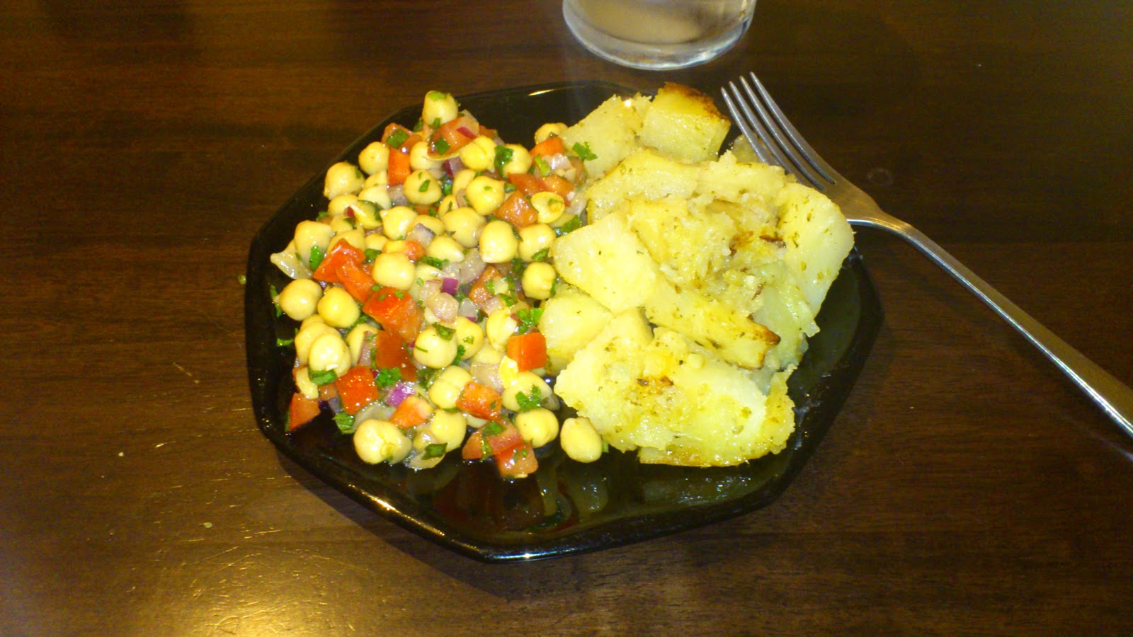 After we got home, I finished making dinner. Chicken, greek potatoes and chickpea salad. I of course only had the latter two. The good news is that I ate on a salad size plate. The bad news is I squeezed as many potatoes as I could on my little plate because these potatoes are by far the most amazing potatoes I've ever tasted. In my defense, the other side of my plate was filled with chickpea salad, which is a really good thing right? So I think I will refer to my dinner as balanced. ;-)
